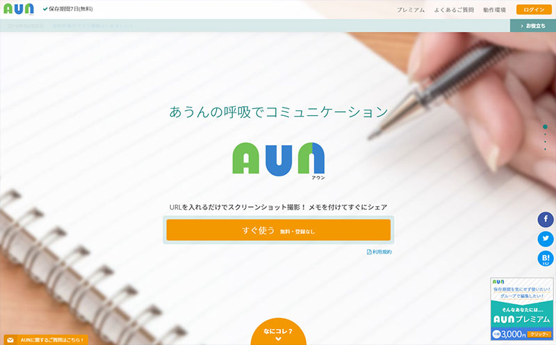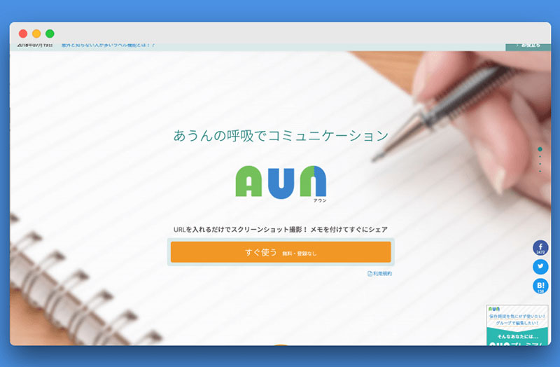 AUNは、スクリーンショットにメモが書けるというシンプルなツールです。